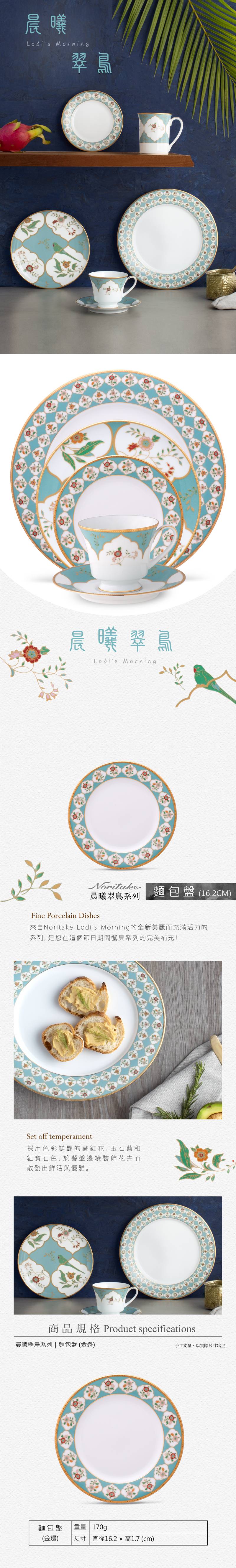 NORITAKE 晨曦翠鳥金邊麵包盤16.2CM