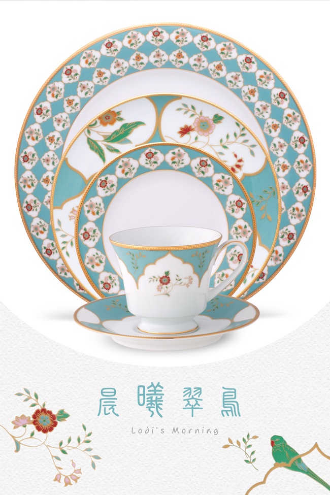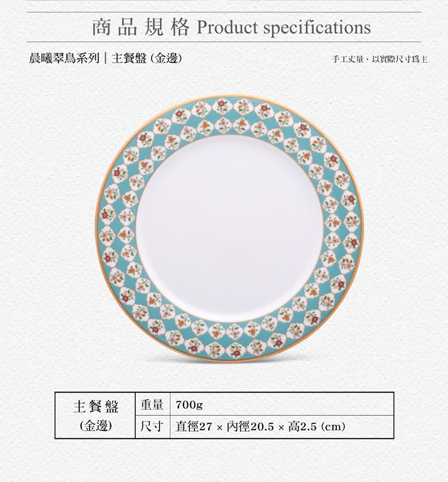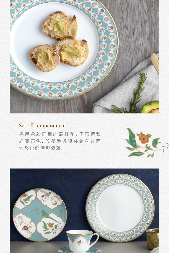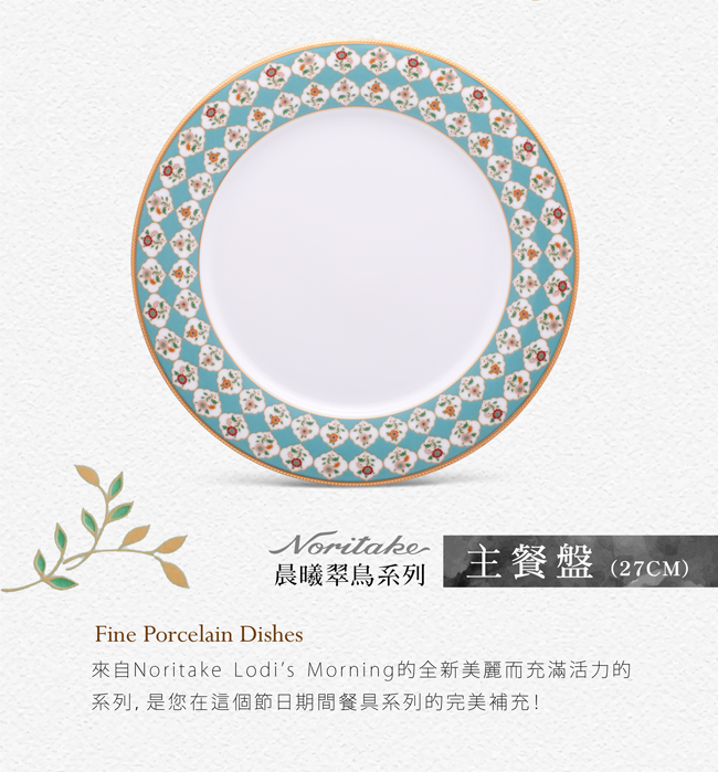 NORITAKE 晨曦翠鳥金邊主餐盤27cm