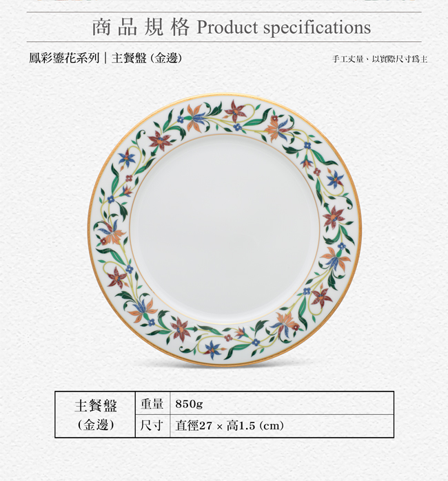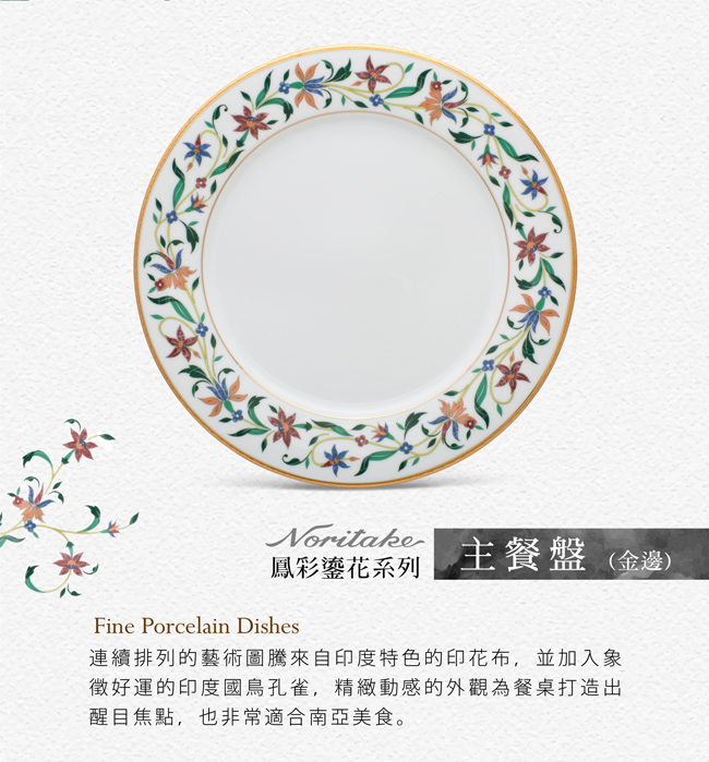 NORITAKE 鳳彩鎏花金邊主餐盤27cm(不得低於八折、不擺花車)