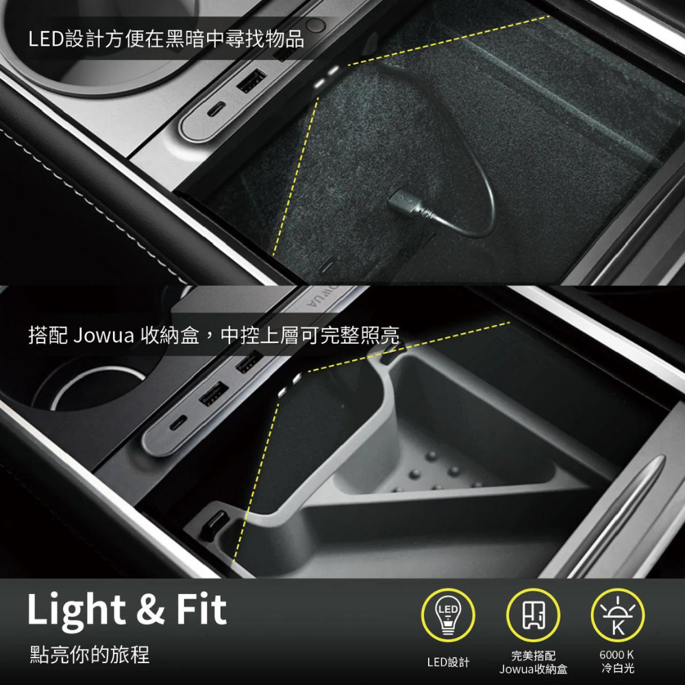 搭配 Jowua 中控收納盒與Jowua磁吸線,收納盒與集線器完美結合,絕對是 Model 3 (2021+) & Model Y 最佳充電與收納的解決方案。