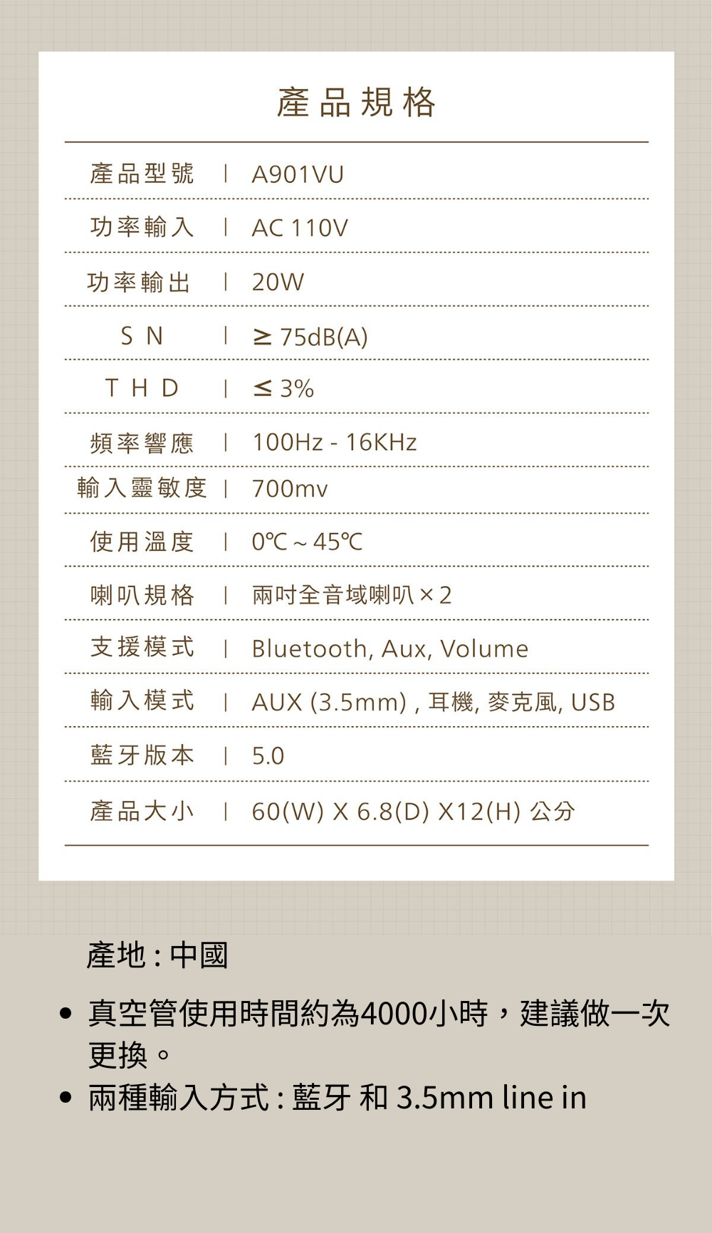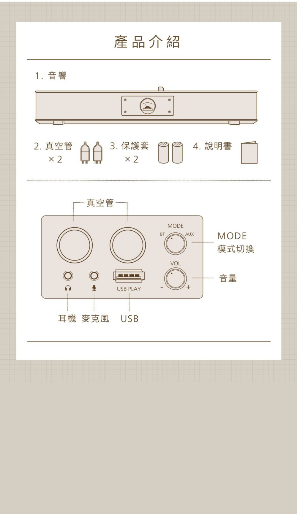 2.針對產品因原物料瑕疵或是生產製造瑕疵,而導致無法正常使用,將提供更換的維修服務方式,請您提供購買【ATUBE|真空管藍牙 soundbar 音響】的發票明細,並以照片/影片/詳細描述透過【Atube TW 來自韓國的真空管音響】 facebook私訊:https://pse.is/4hr83u