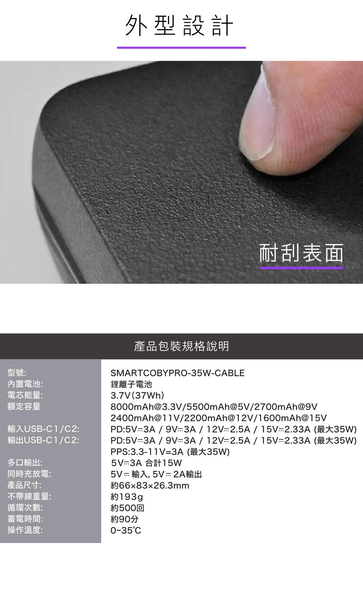 日本CIO SMARTCOBY Pro CABLE 35W快充行動電源_Type-C版