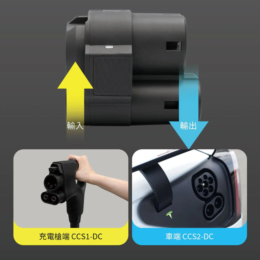 相容第三方的CCS1直流充電網絡使用,CCS2 車主接上此轉接頭就能使用CCS1充電樁,增加您的充電選擇。