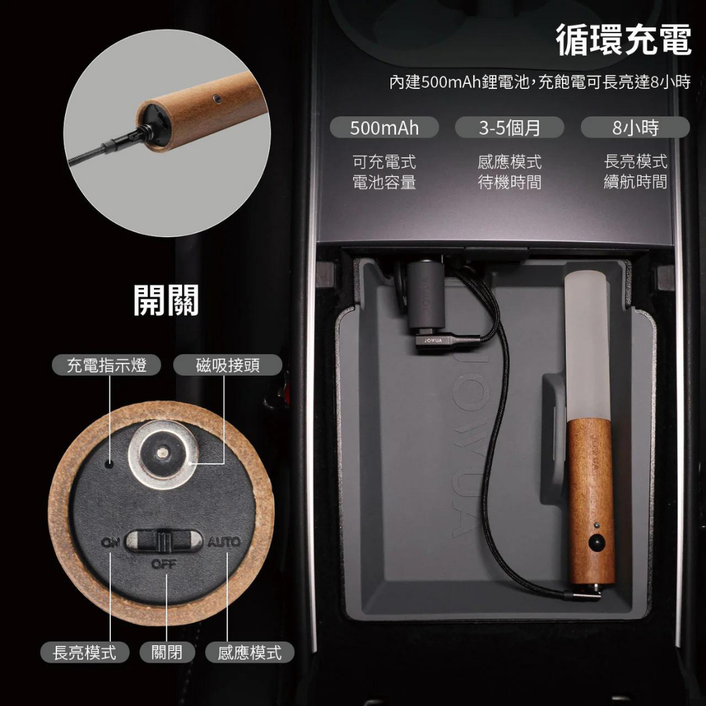內建 500mAh 鋰電池,充飽電可長亮達 8 小時或感應模式自動亮燈約3-5個月。