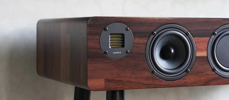 minfort 訂製 54mm 氣動高音,頻寬高達35K,透過一塊折疊的薄膜並在底部加上導電金屬,在強力的磁場作用下,聲音訊號令折疊的振膜左右來回震動,使空氣產生聲波,解析力細緻綿密,搭配四個三吋全音域單體,使之中高音域更出色,尤其在人聲的表現如臨現場歌唱對話,高分解力的聲音描寫出音樂的微妙表情。(氣動高音單體為中國製)