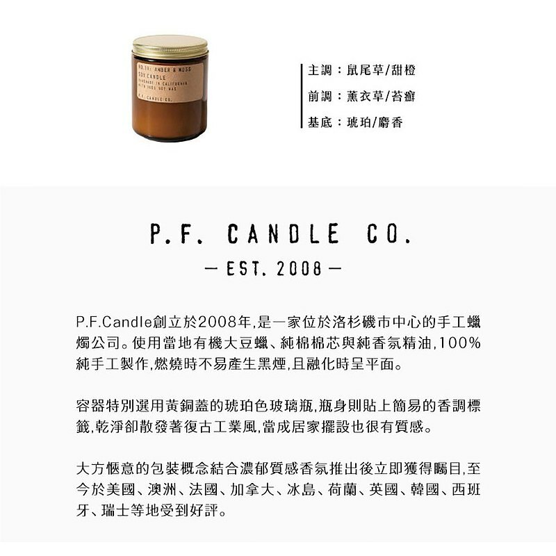 P.F. CANDLE CO. 手工香氛蠟燭 7.2oz 琥珀麝香 Amber & Moss