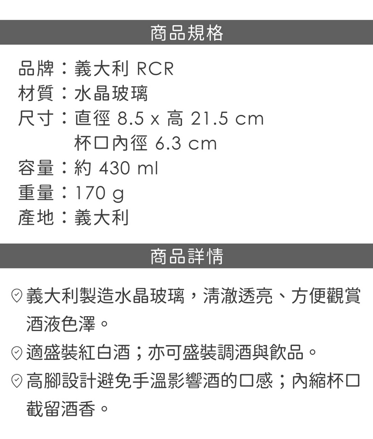 義大利 RCR Essential E43爾珊卓無鉛水晶高腳紅酒杯430c (6入)