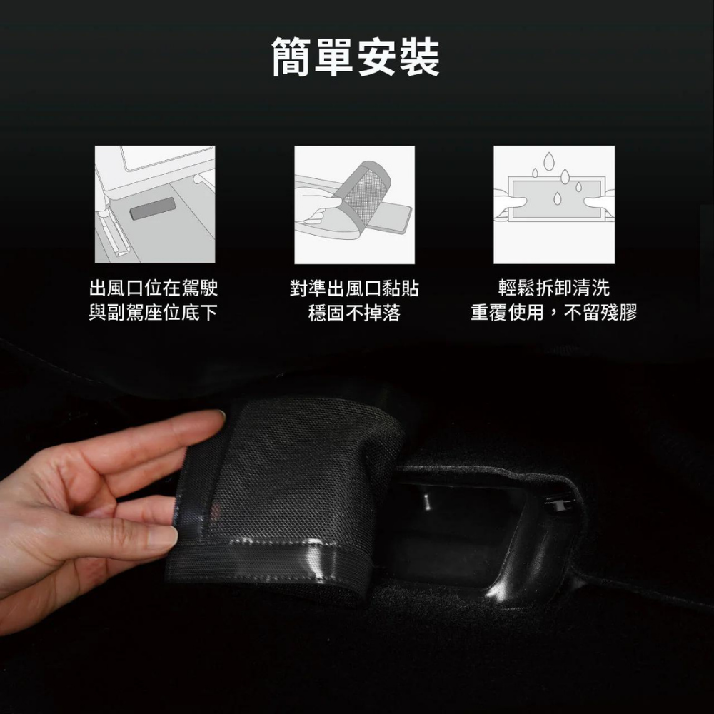 一包兩入,安裝在前排座位下出風口。