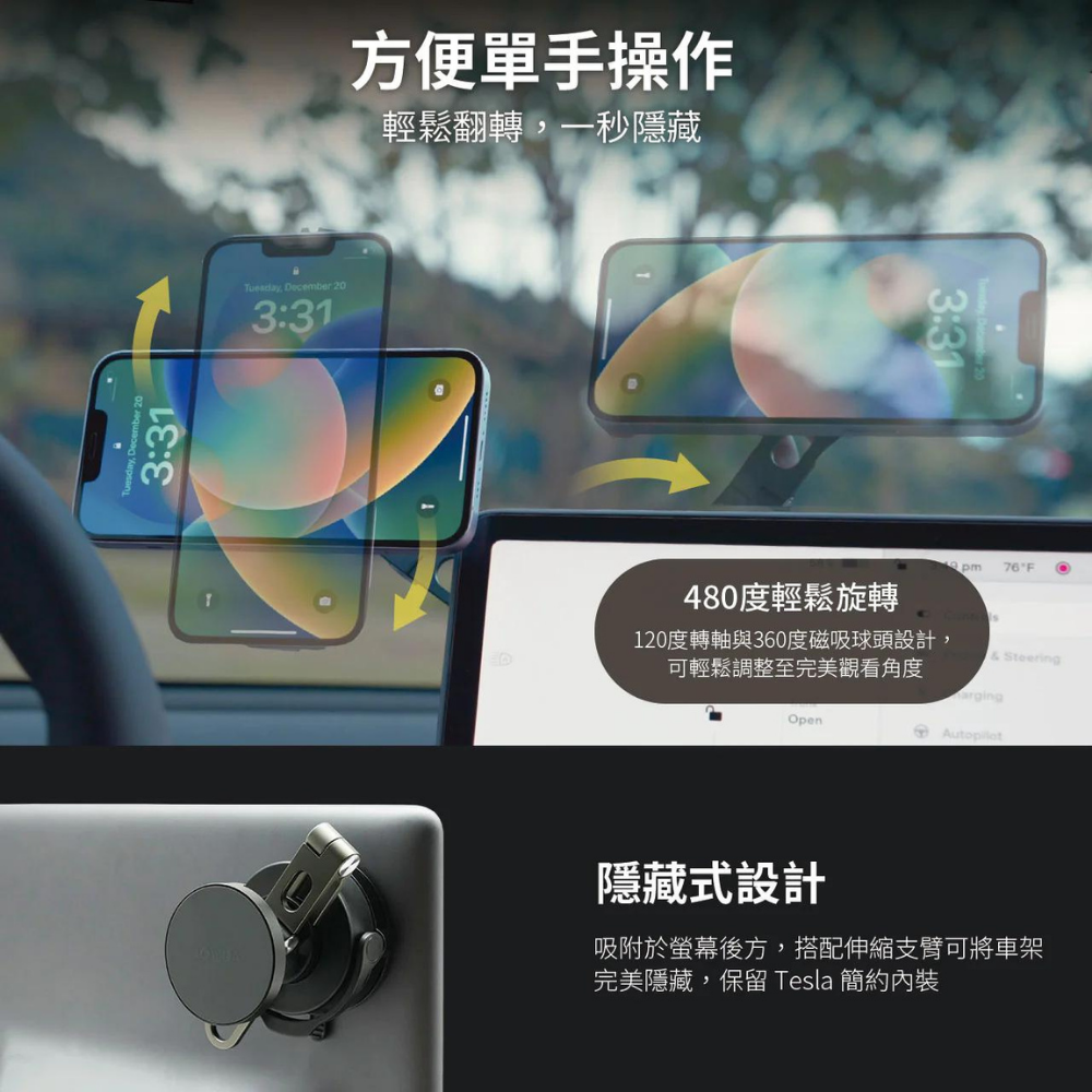 穩固吸附 Model 3/Y 螢幕後方且不留殘膠,不怕手機裝置晃動與掉落。