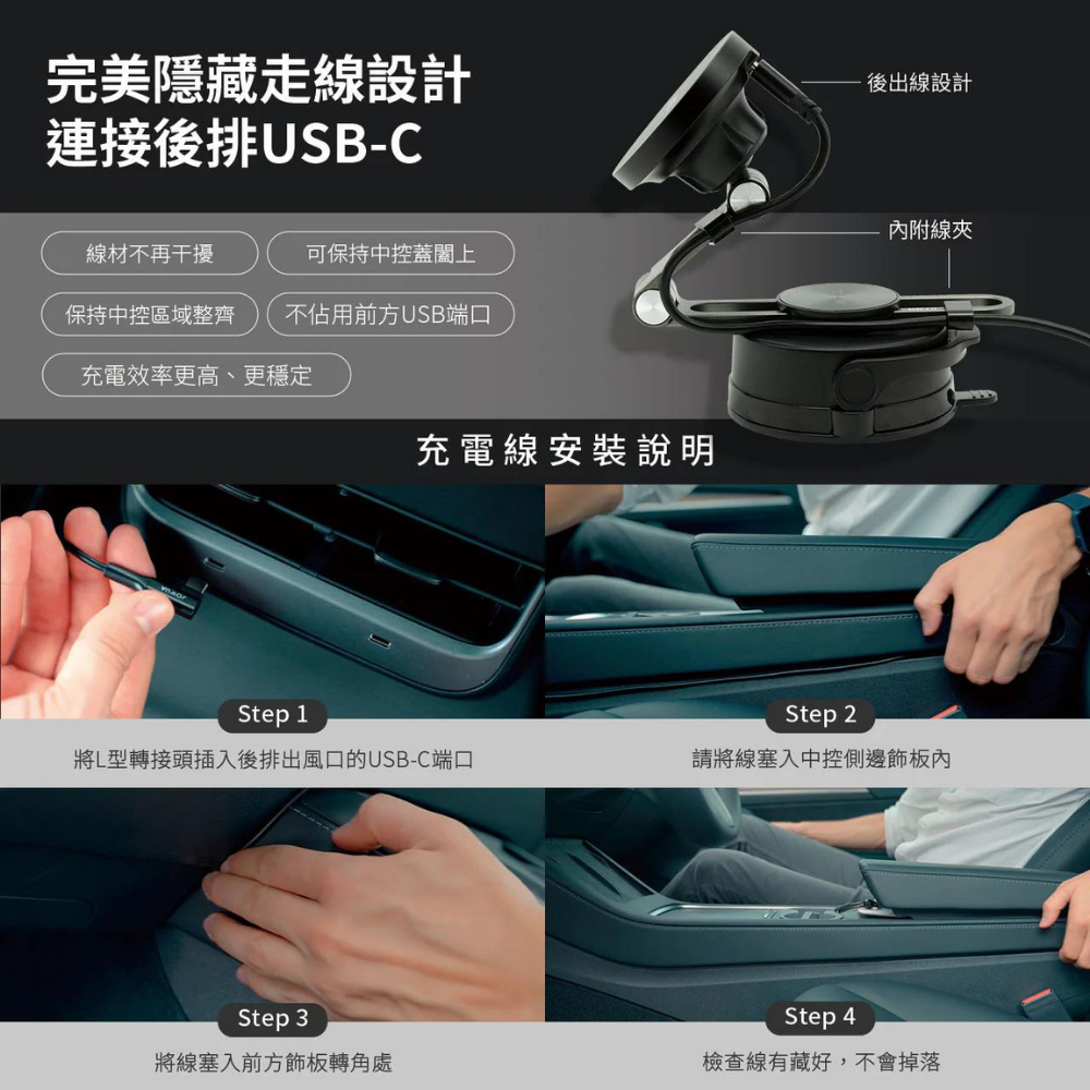 *無線充電版本僅附 USB-C to USB-C 充電線,若後排出風口為 USB-A 端口,需另外加購轉接頭。