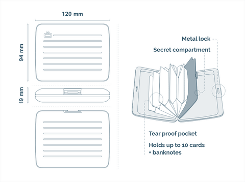 * 容納多達10張信用卡+紙鈔及些許零錢