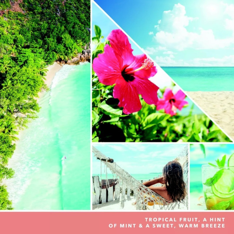 前調:多汁梨、佛手柑、成熟的百香果、番石榴、橙子